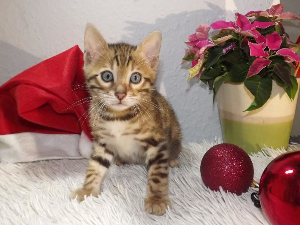 Наши бенгальцы любят человеческий контакт и очень хорошо социализированы. Родители - чистокровные бенгальские кошки: мамино-коричневый пятнистый тэбби, папа в окрасе коричневого тэбби розового