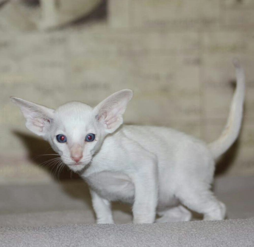 Ориентальная кошка сильная и в тоже время изящная порода. По внешнему виду может показаться что это хрупкое животное, но это только на первый взгляд. На самом деле ориентал обладает довольно крепким телосложением и ведет активный образ жизни.