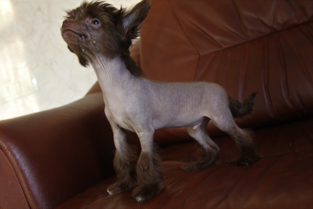 Продаётся великолепный щенок породы китайская хохлатая. Голый мальчик редкого шоколадного окраса! Окрас без подпала, без пятен, без перецвета! Д/р 15 июня, 2019г. Небольшого размера (от миниатюрных родителей, вес мамы 2,8кг). Документы РКФ, клеймо. Без брака и недостатков (яички на месте, прикус норма, без грыж, без прибылых пальцев и подобной ерунды). Привит по возрасту. Продажа сопровождается заключением договора. Гарантируется помощь в выращивании (консультации ветеринарного специалиста по кормлению и уходу)! Возможна покупка с рассрочкой.