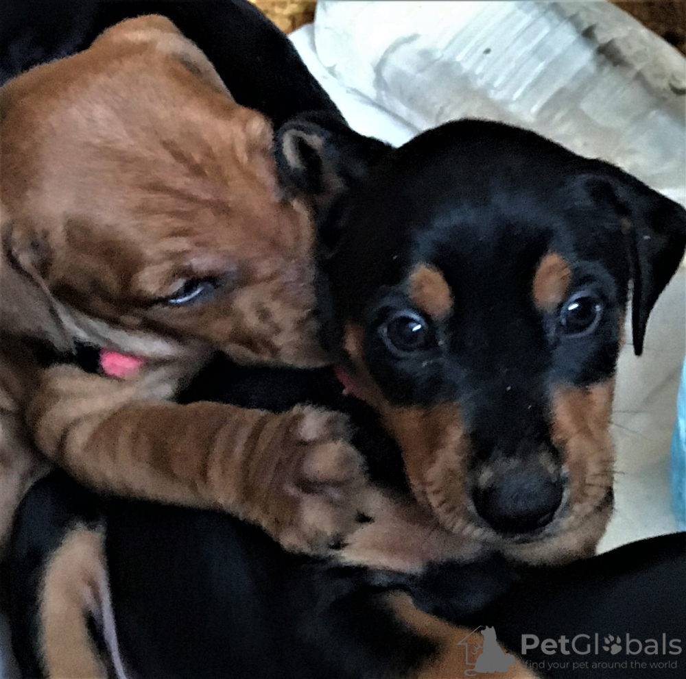 Щенки Немецкого пинчера двух окрасов рыжие и черно-подпалые. Мальчики. С документами и прививками. Здоровые и активные. Хвостики купированы. Немецкий пинчер сообразителен, легко обучаемый, активный, компаньен для человека. Родители участники выставок, чемпионы Украины. Щенки приучаются к сухому корму и натуралке. Прикус у всех правильный( типа ножницы). Звоните или пишите телефон 380674968647или Viber WhatsApp