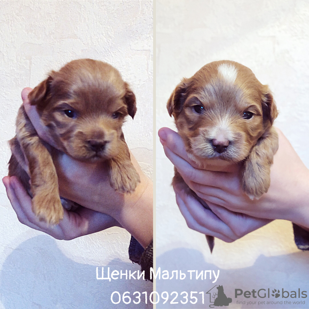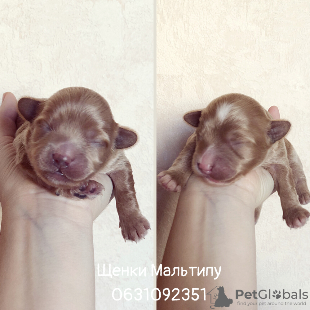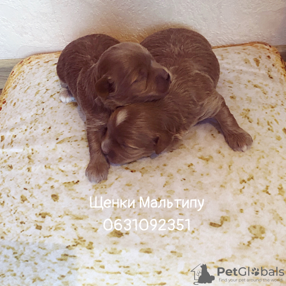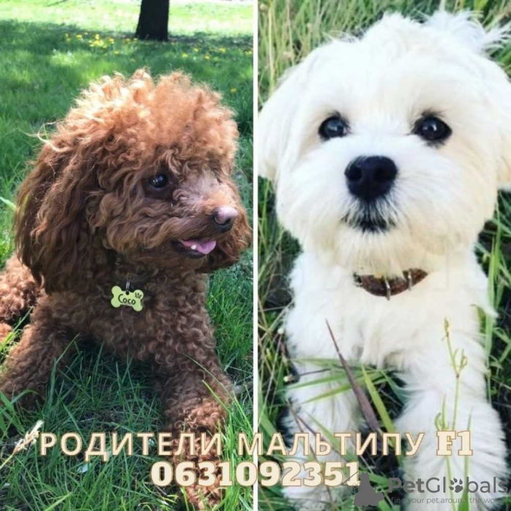 Эти очаровательные малыши – МАЛЬТИПУ первого поколения (F1). То есть, у них мама – той пудель Ред Браун (100% чистая порода) и папа – белоснежный мальтезе (100% чистая порода). Оба родителя маленькие (2,5-3кг) и щенки тоже будут мини (вырастут до 2,5 -3 кг.)