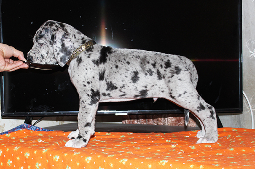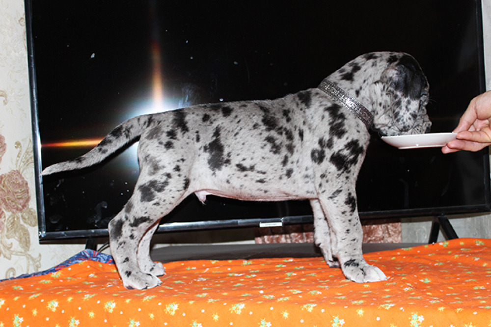 Щенки немецкого дога чёрного, мраморного и серомраморного окрасов. Профессиональное разведение. На фото щенки и родители (Ch Best Of Roys Slavna Olgor - Ch Laufer Hilton)