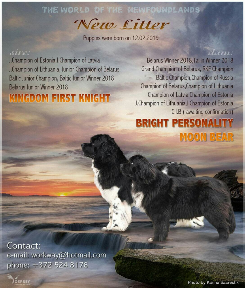 Объявление № 1621 о продаже питомца породы Ньюфаундленд продавца Natalia в городе Васкьяла, Эстония. У продавца Natalia 63127 просмотров, 0 отзыв(ов) и рейтинг 5 из 5. Данный пользователь добавил 1 объявлений о продаже домашних животных. Уточнить все подробности и связаться с продавцом по объявлению "Щенки готовы к переезду с начала апреля. К этому времени они получат прививки, родословную." можно через Online-консультанта либо обратную связь.