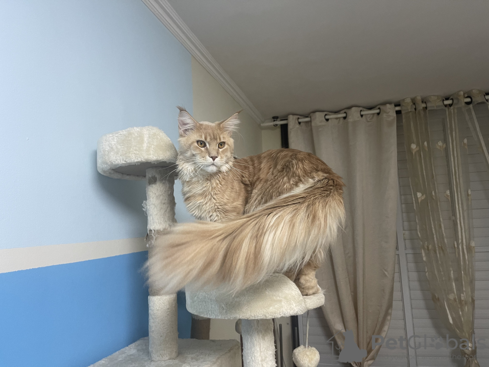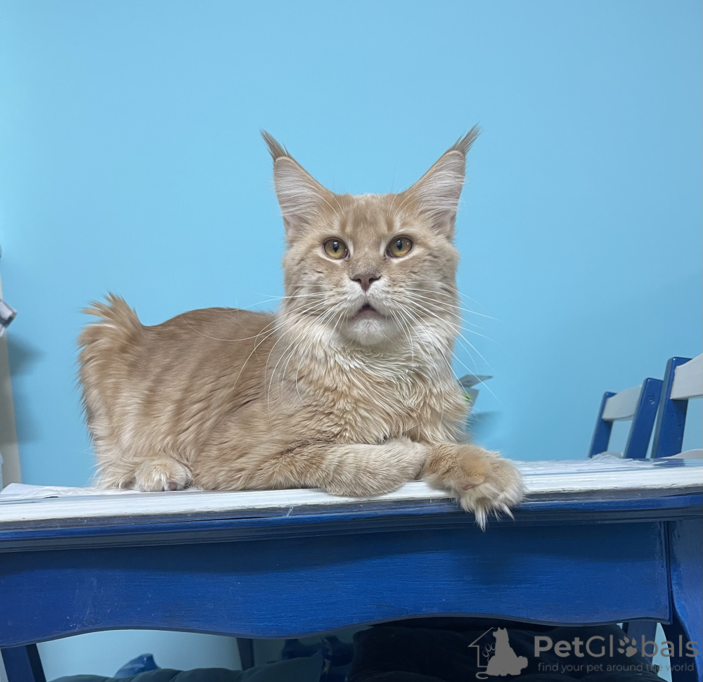 Молодой красивый кот породы мейн кун приглашает кошечку для вязки. Добрый и ласковый мальчик.