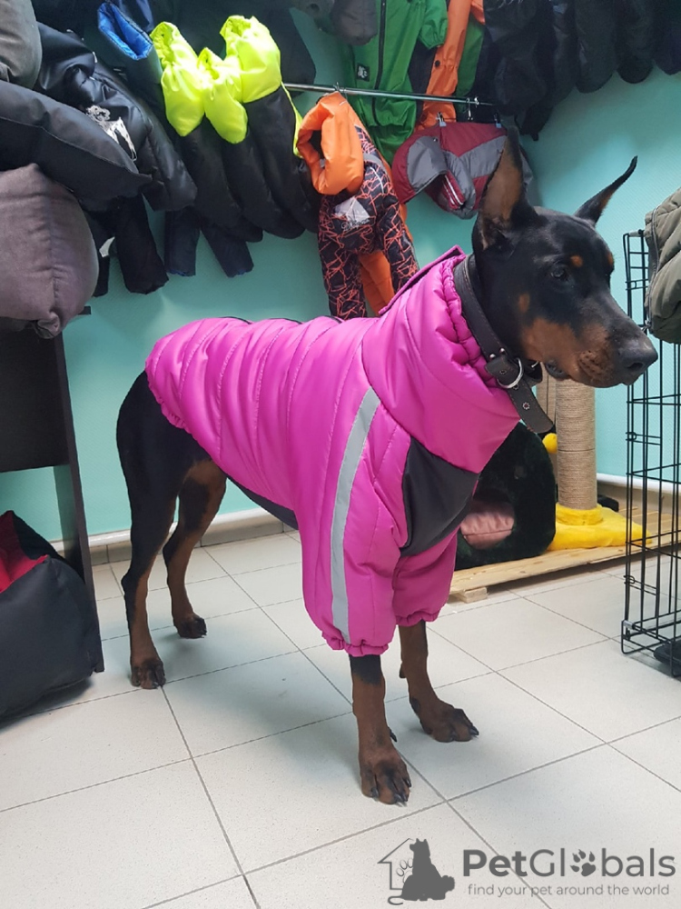 Зимняя попона для взрослых доберманов. Длина по спине 60 см, высота ворота 18 см. В наличии.