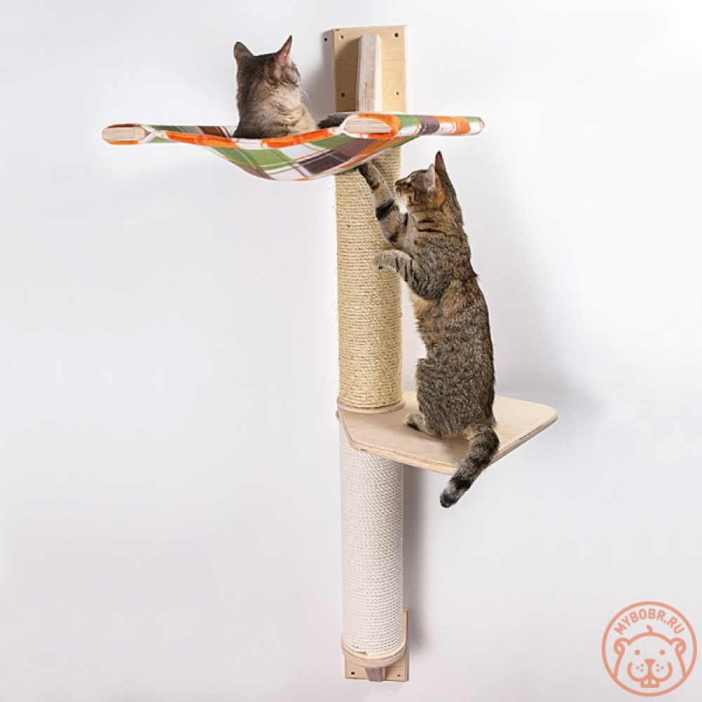 В вашей квартире не очень много свободного места? Ваш питомец царапает мебель и обои? Вы хотите решить эти проблемы простым и надежным способом? Тогда ваш выбор – настенный комплекс для кошек «Токио 2»! Он совмещает в себе когтеточку, царапать которую гораздо приятнее, чем диван, уютный гамак, в котором так удобно отдыхать и наблюдать за окрестностями, и небольшую площадку, куда так здорово запрыгивать во время веселых игр